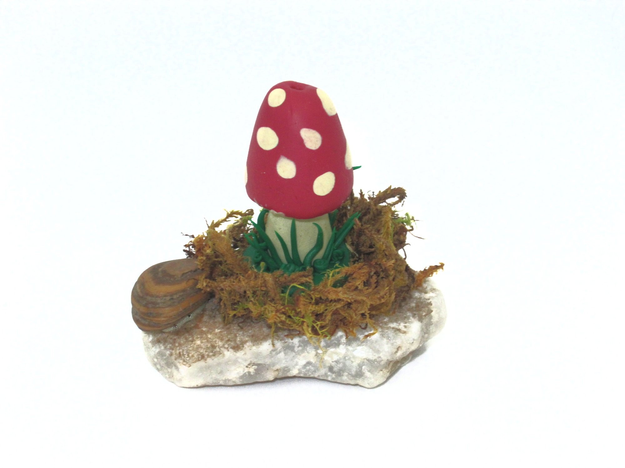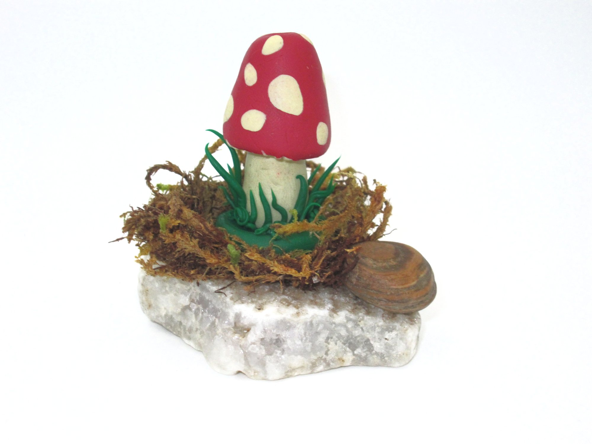 - Material: Clay, Moss, Quartz Crystal, and Petrified Wood