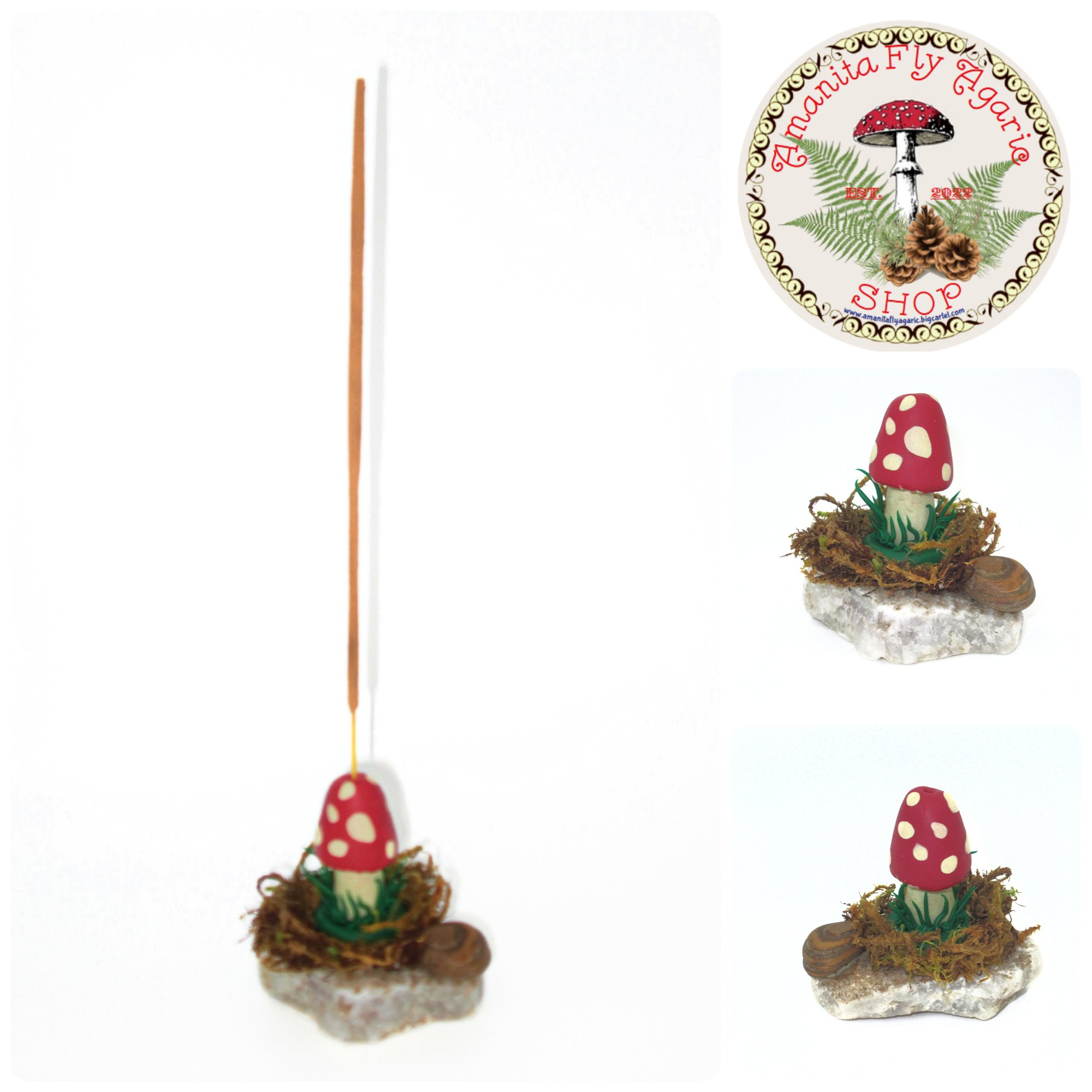 π Amanita Incense Holder - Clay Art - Cottagecore - Natural 3" X 3" Inches