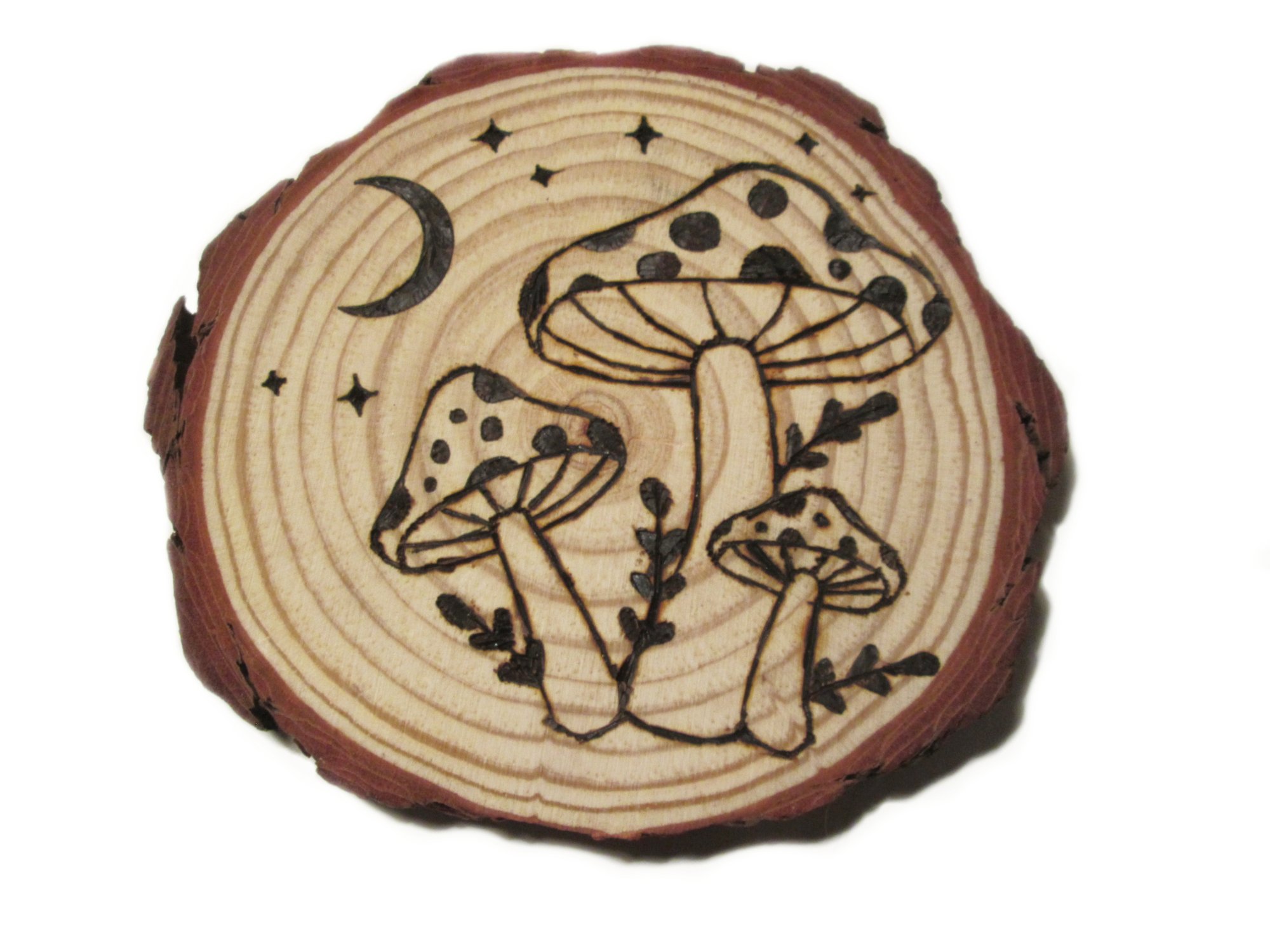 π Amanita Magnet - Wood Burning Art - FOR SALE - Cottagecore - Natural 5" Inches