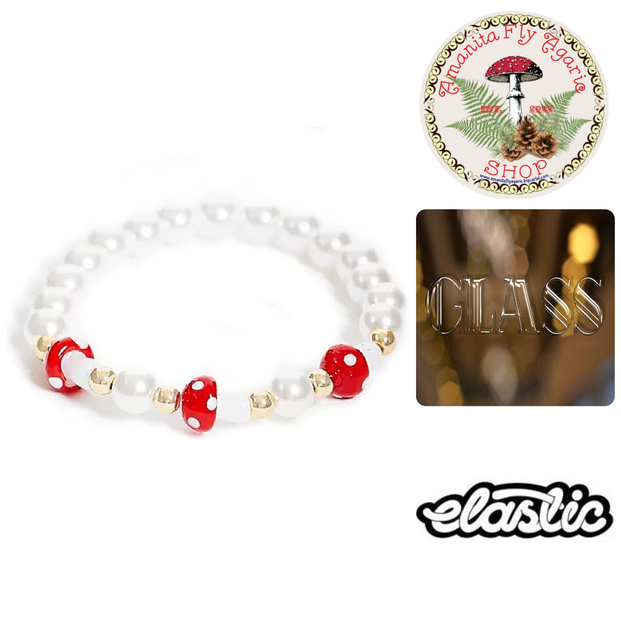 π Amanita Mushroom Bracelet - Elastic - Glass - Cottagecore - FOR SALE