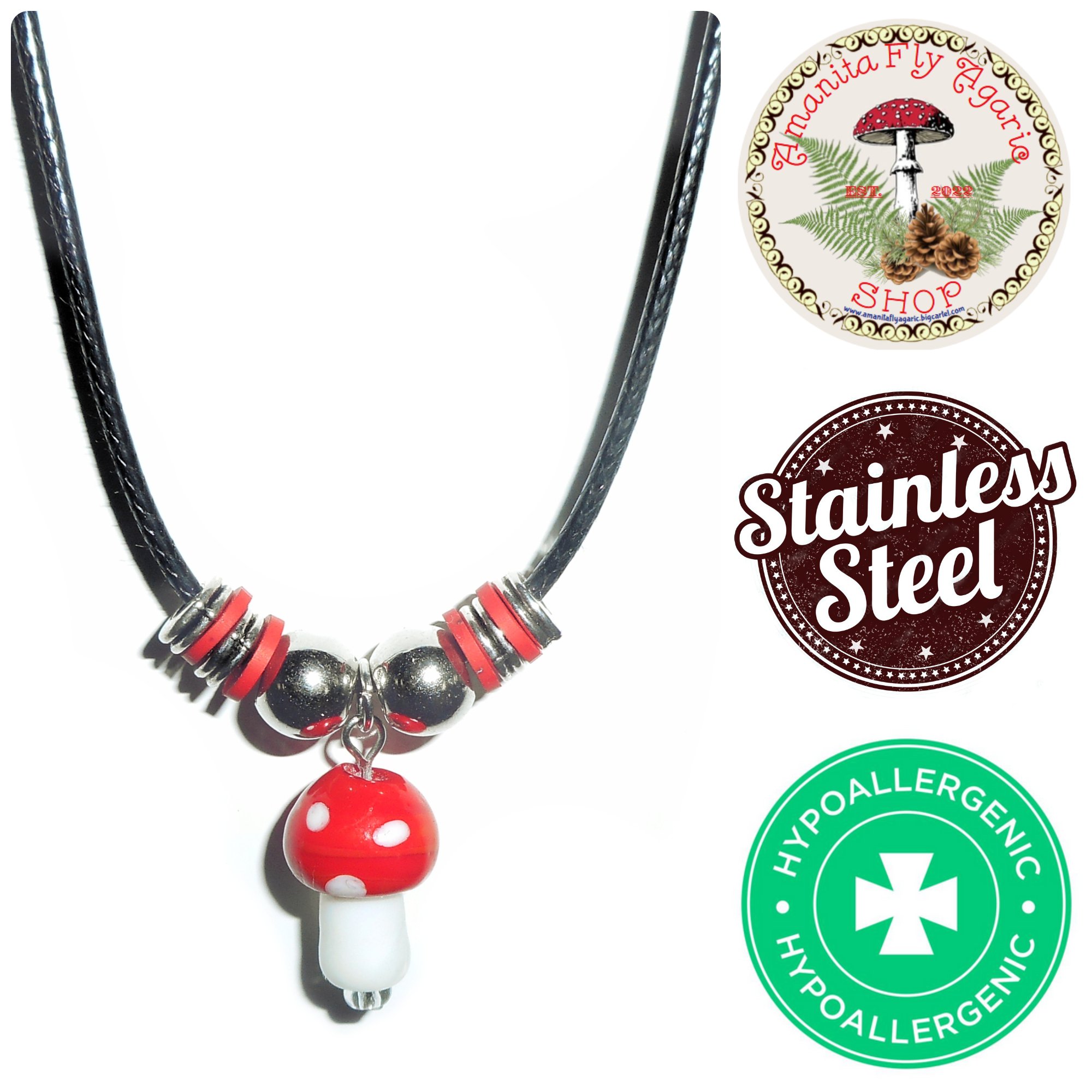 π Amanita Mushroom Necklace - Hypoallergenic - Stainless Steel - Cottagecore - FOR SALE