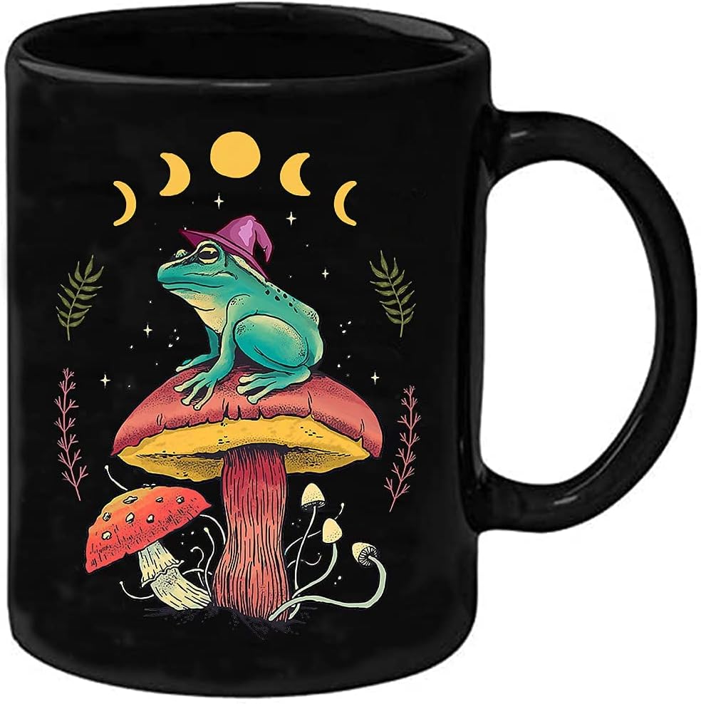 π Amanita Mushroom Toad Coffee Mug - Ceramic - 11oz - Black - Cottagecore - FOR SALE